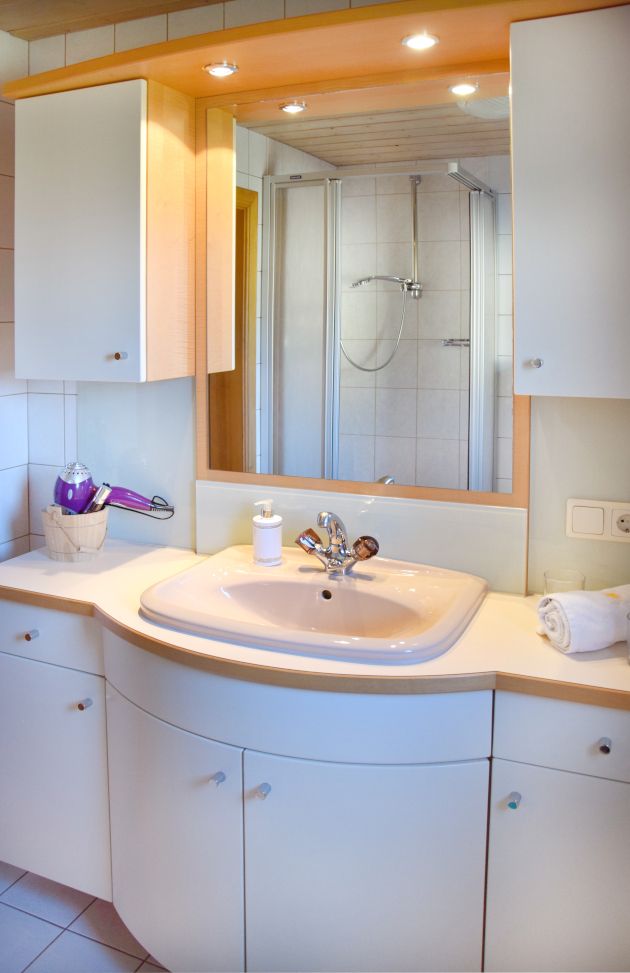 • in einem Schlafzimmer befindet sich ein Waschbecken